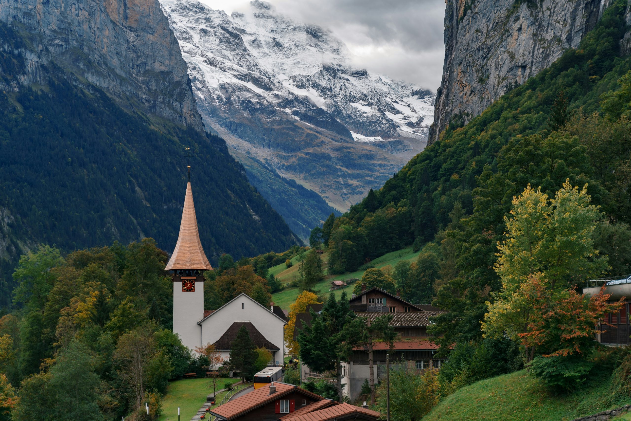Lauterbrunnen is a grand, echoing symphony. Located in the heart of the Bernese Oberland, it is often called the “Valley of 72 Waterfalls,” and for good reason. As you enter the valley, the world narrows into a dramatic corridor of limestone cliffs that soar nearly 1,000 feet straight up toward the sky.